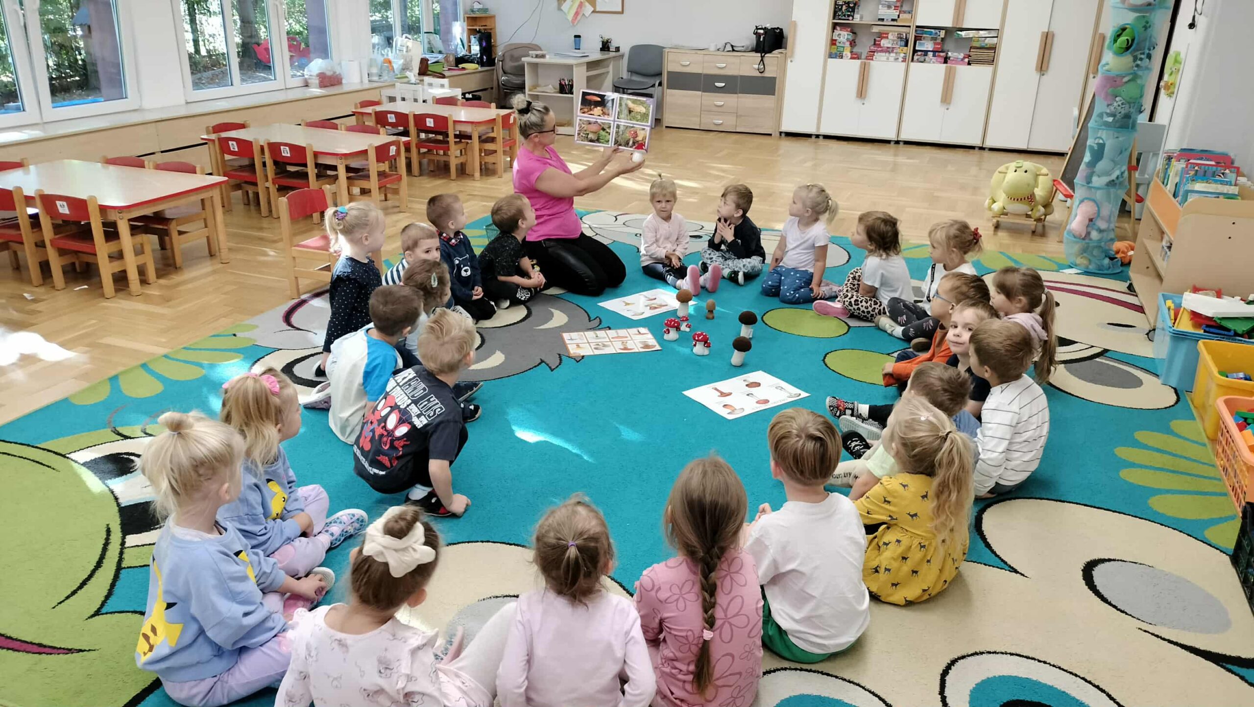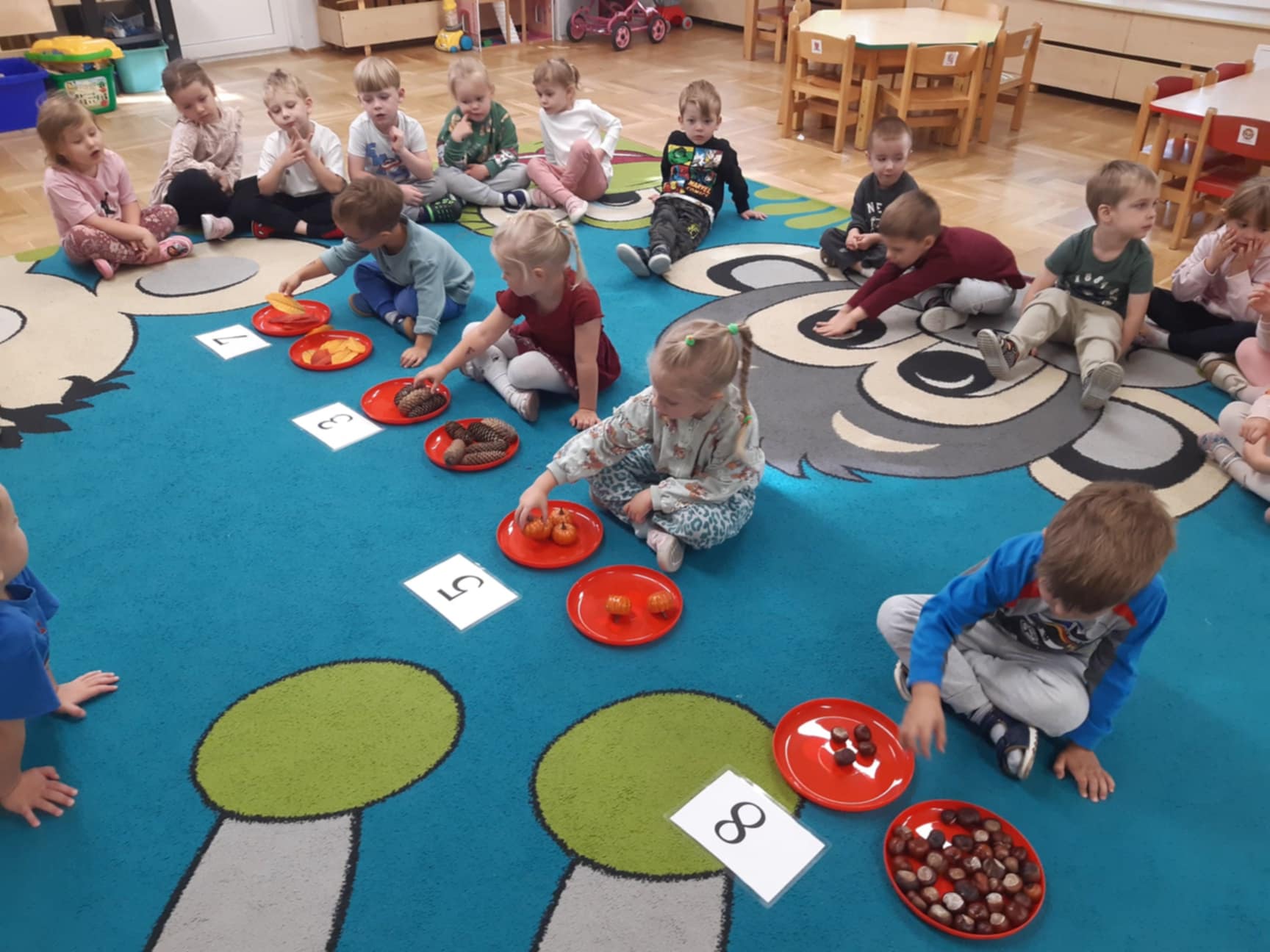 W minionym tygodniu „Muszelki” utrwalały umiejętności matematyczne, korzystając z darów jesieni z naszego kącika. Poznały również mieszkańców lasu i nie zabrakło przy tym zabawy – układały puzzle z postaciami zwierząt rozwijając spostrzegawczość, cierpliwość i współpracę w grupie. Tworzyły piękną jesienną pracę plastyczną, zapoznały się z wyglądem kasztanowca, dębu i jarzębiny, a także czym się różnią ich owoce i liście. Dowiedziały się, jakie grzyby są jadalne, jakie niejadalne, nazywały je i rozpoznawały po ich wyglądzie. Korzystając z pięknej jesiennej aury, świetnie bawiły się na świeżym powietrzu, korzystając z ruchu na ogrodzie przedszkolnym. Ten tydzień pozwolił nam uważnie przyjrzeć się przyrodzie i rozwijać ciekawość świata.