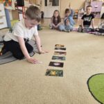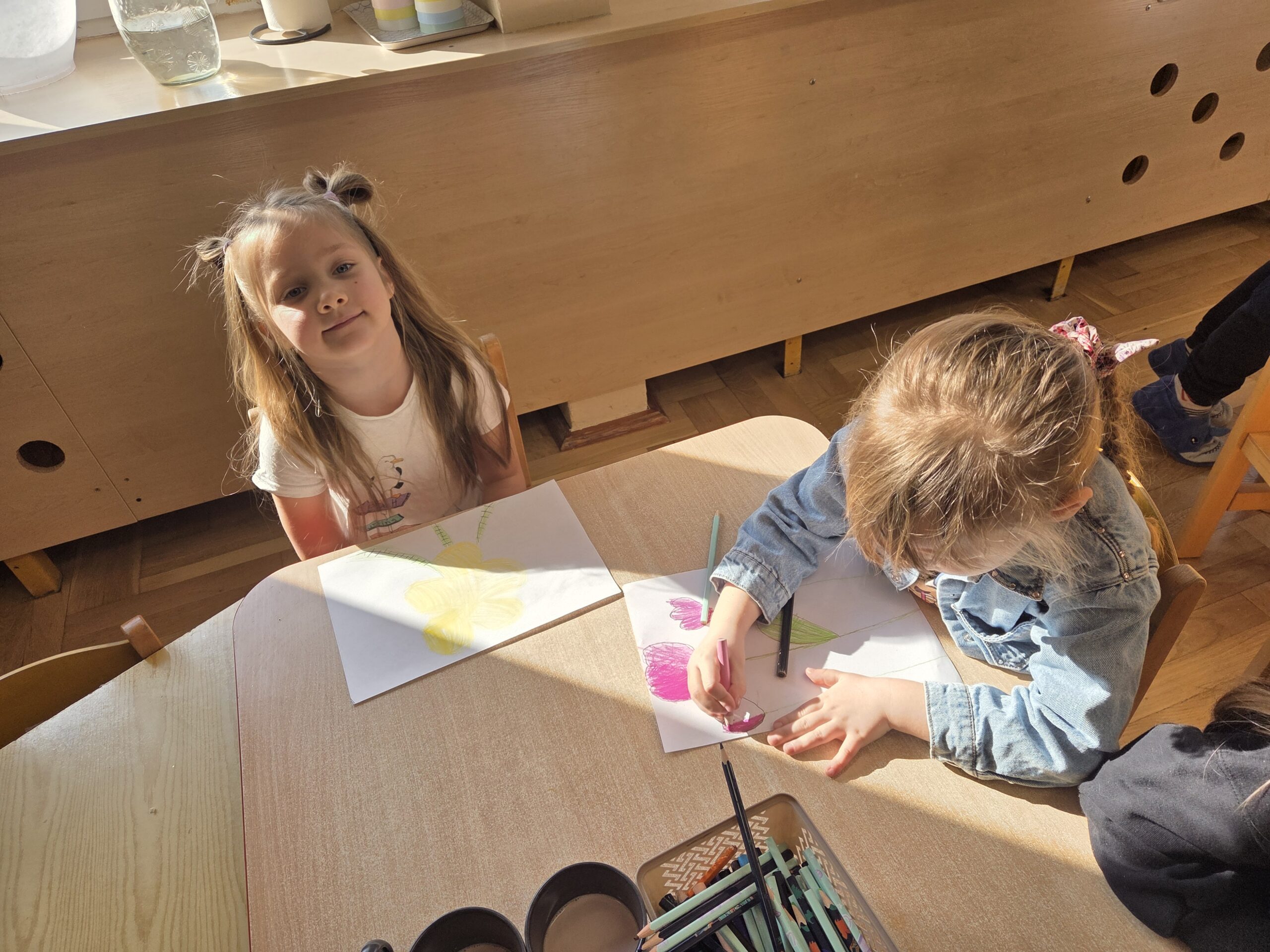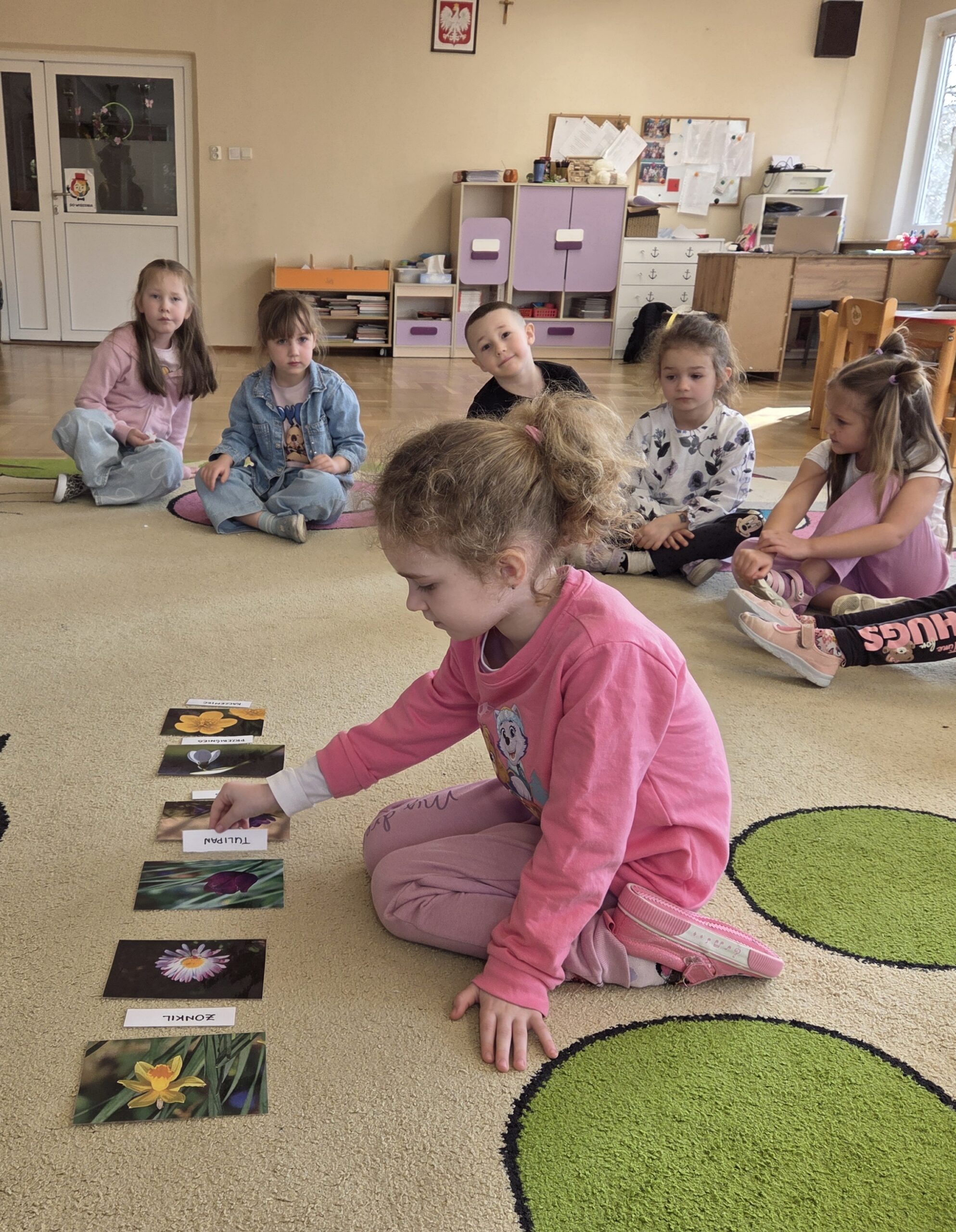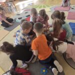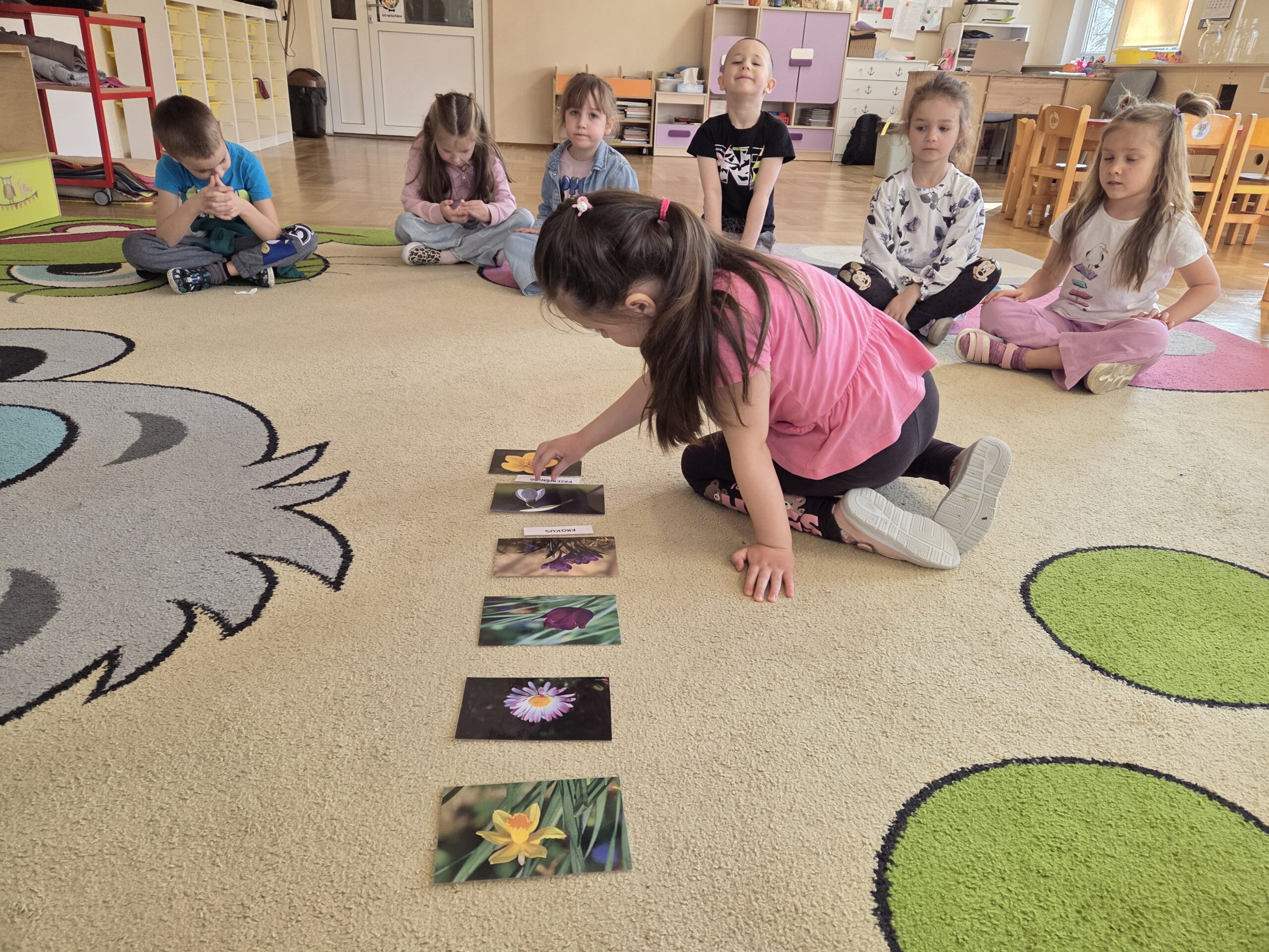 Kwiaty stały się także inspiracją do rozwijania umiejętności matematycznych – liczyliśmy, porównywaliśmy wielkości oraz układaliśmy elementy w odpowiedniej kolejności. Wspólne układanie wiosennych puzzli rozwijało u dzieci myślenie logiczne i przestrzenne oraz uczyło współpracy.