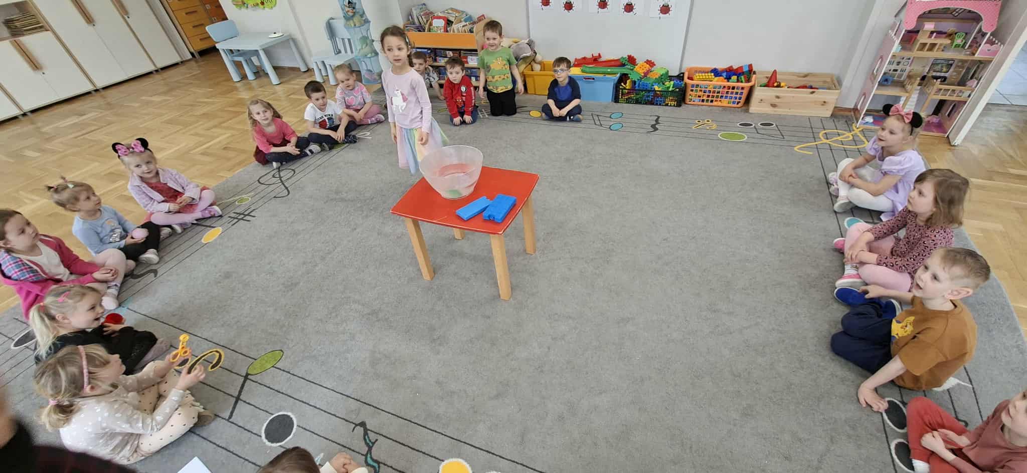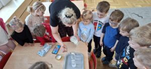 Podczas „Dnia Wody” dzieci poznały znaczenie wody w codziennym życiu. Rozmawialiśmy o tym, do czego potrzebna jest woda oraz dlaczego należy ją oszczędzać. Dzieci dowiedziały się także, jakie są stany skupienia wody – ciekły, para wodna oraz lód. Najwięcej radości sprawiły doświadczenia, podczas których dzieci obserwowały topnienie lodu, parowanie wody oraz sprawdzały, co pływa, a co tonie. Dzieci przekonały się również, że w ciepłej wodzie sól i cukier rozpuszczają się szybciej niż w zimnej. Zajęcia były okazją do rozwijania ciekawości poznawczej oraz nauki poprzez zabawę.