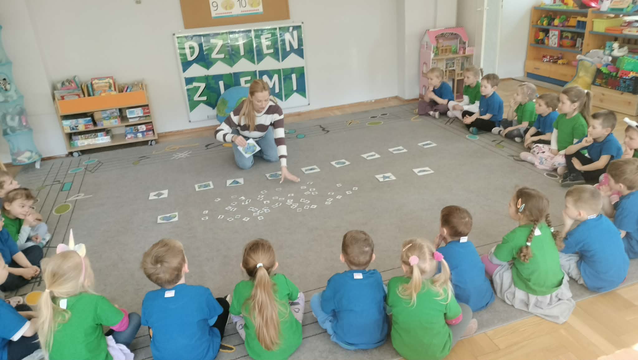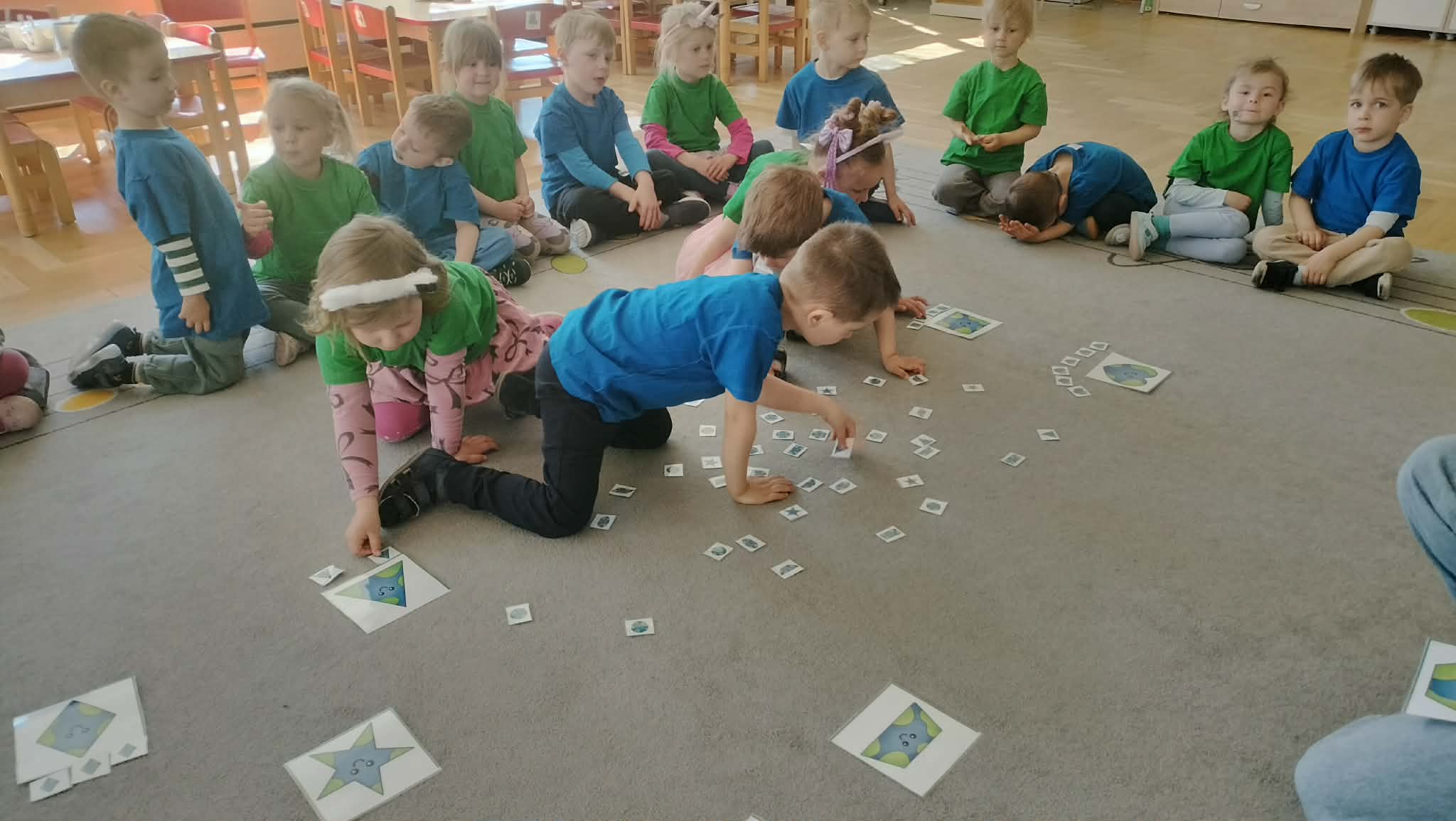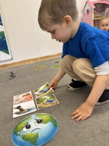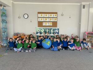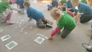 Podczas zajęć rozwiązywały matematyczne zadania, uczyły się rozróżniać zachowania dobre i złe dla naszej planety oraz ćwiczyły spostrzegawczość, dobierając i układając podobne kształty. To był dzień pełen nauki, zabawy i troski o naszą Ziemię.