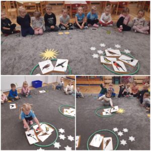 W minionym tygodniu dzieci dowiedziały się, które ptaki odlatują na zimę do ciepłych krajów, co pozwoliło im poszerzyć swoją wiedzę o przyrodzie i cyklu życia ptaków. W ramach kreatywnych działań same nazbierały liście, z których następnie stworzyły piękną pracę plastyczną „Jeża”. Rozwijały tym swoją wyobraźnię, zdolności manualne i motoryczne z naturalnych technik plastycznych . Dużo radości sprawiały im także zabawy muzyczno-ruchowe, które nie tylko dostarczały im dużo pozytywnych emocji, radości, integracji, ale także wspierały rozwój motoryki i koordynacji. Cały tydzień był pełen pozytywnej energii, kreatywności i dobrej zabawy, co dobrze wpłynęło na samopoczucie dzieci i ich chęć do nauki o otaczającym świecie.”