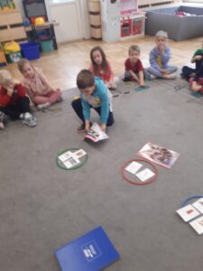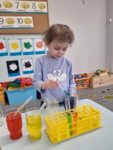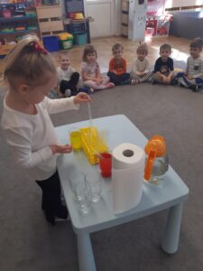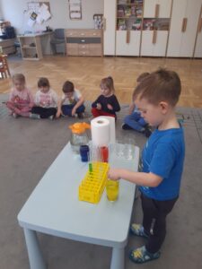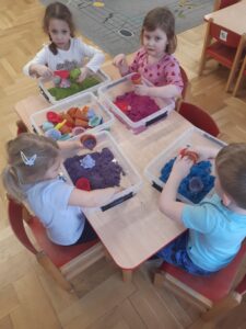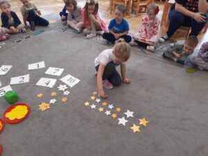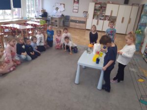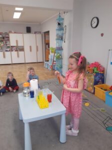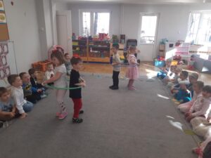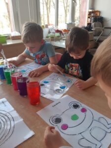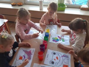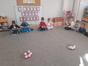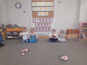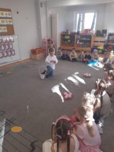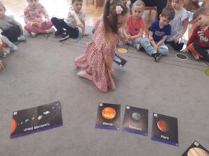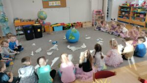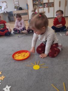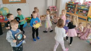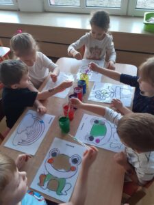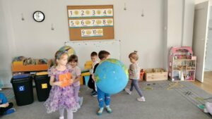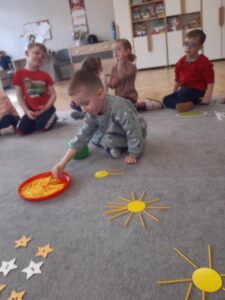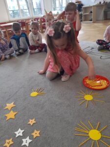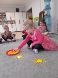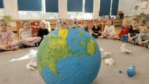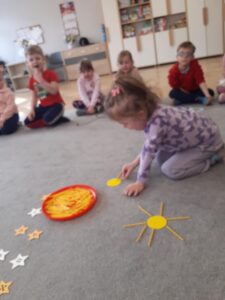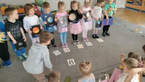 W ostatnich dniach Muszelki uczestniczyły w zajęciach poświęconych naszej planecie oraz kosmosowi. Poznały planety Układu Słonecznego, ich kolejność oraz dowiedziały się, jak Ziemia krąży wokół Słońca. Rozmawialiśmy także o tym, dlaczego na Ziemi występują dzień i noc oraz skąd biorą się pory roku. Przedszkolaki dowiedziały się również, jak ważne jest dbanie o naszą planetę i w jaki sposób każdy z nas może troszczyć się o środowisko. Podczas zajęć dzieci utrwalały także umiejętności matematyczne – układały promyki słońca zgodnie z wylosowaną liczbą, ćwicząc liczenie i dopasowywanie ilości. Nie zabrakło również aktywności rozwijających motorykę małą. Przedszkolaki brały udział w zabawach z wodą, podczas których doskonaliły sprawność dłoni oraz ćwiczyły chwyt pęsetkowy, a na podstawie historyjek obrazkowych utrwalały pojęcie „dociekliwość”. Wiedzą, jak ważne jest zadawanie pytań, poszukiwanie oraz obserwowanie. Wspólnie świętowaliśmy także Dzień Kobiet. Była to okazja do rozmów o życzliwości, składania sobie miłych życzeń oraz radosnego spędzenia czasu w przedszkolnej atmosferze.
