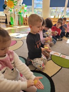 Ćwiczyliśmy przeliczanie i wspólnie porównywaliśmy liczebność zbiorów. Dużo czasu spędzaliśmy na świeżym powietrzu. Obserwowaliśmy nasze przedszkolne hodowle oraz nasiona, które posialiśmy w ogrodzie.