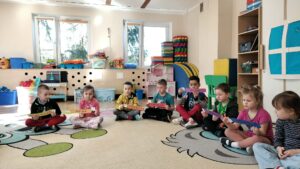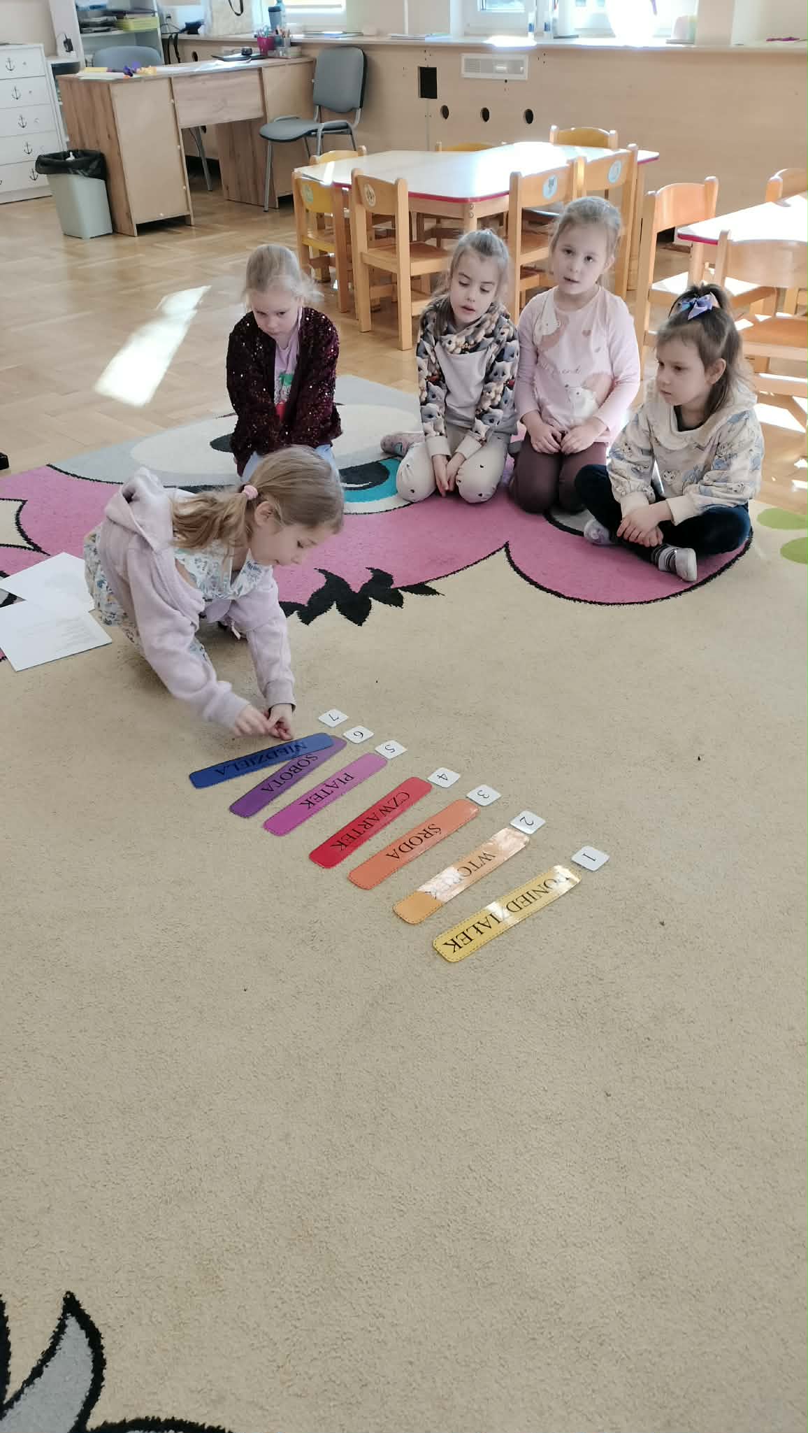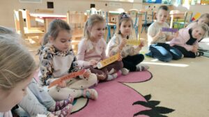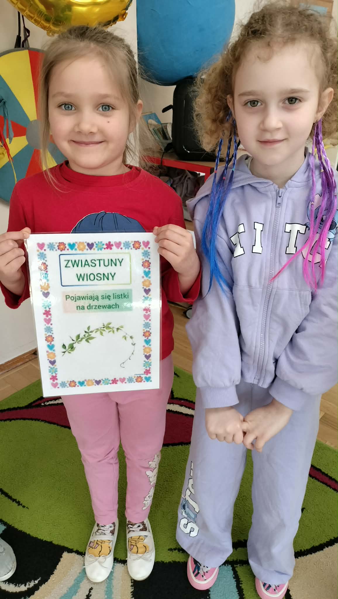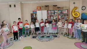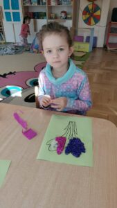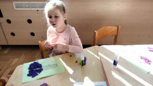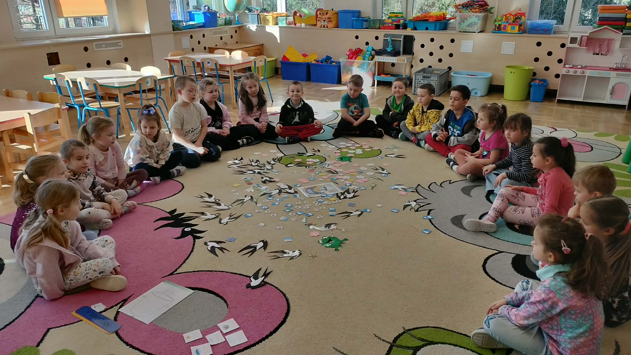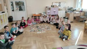 W minionym tygodniu dzieci zapoznały się z przysłowiem „W marcu jak w garncu”, rozmawiały o zmiennej, o zwiastunach nadchodzącej pory roku, o wiosennej pogodzie oraz układały własny „garnek z pogodą”, dopasowując różne zjawiska atmosferyczne. Wykonały również pracę plastyczną przedstawiającą krokusa – jeden z pierwszych zwiastunów wiosny. Podczas zajęć dzieci utrwalały kolejność dni tygodnia oraz rozwiązywały zagadki związane z nadchodzącą porą roku. W tym czasie poznały także nową literkę – G, g, ćwicząc jej rozpoznawanie i poprawną wymowę. Cały tydzień sprzyjał rozwijaniu wiedzy o przyrodzie, spostrzegawczości oraz umiejętności językowych. W naszej grupie świętowaliśmy również „Dzień kobiet”. Chłopcy złożyli dziewczynkom serdeczne życzenia, a wspólne świętowanie upłynęło w miłej i radosnej atmosferze.