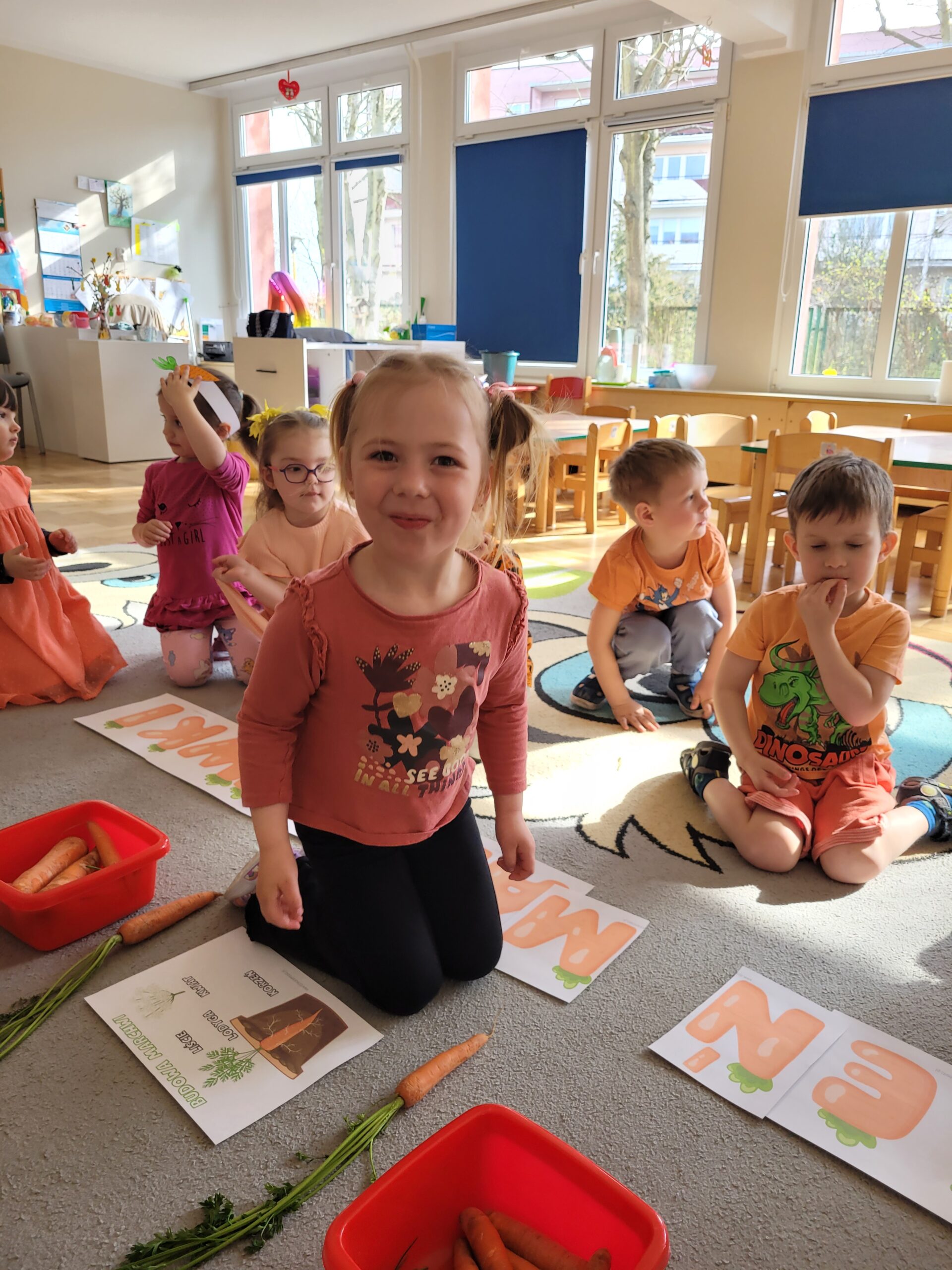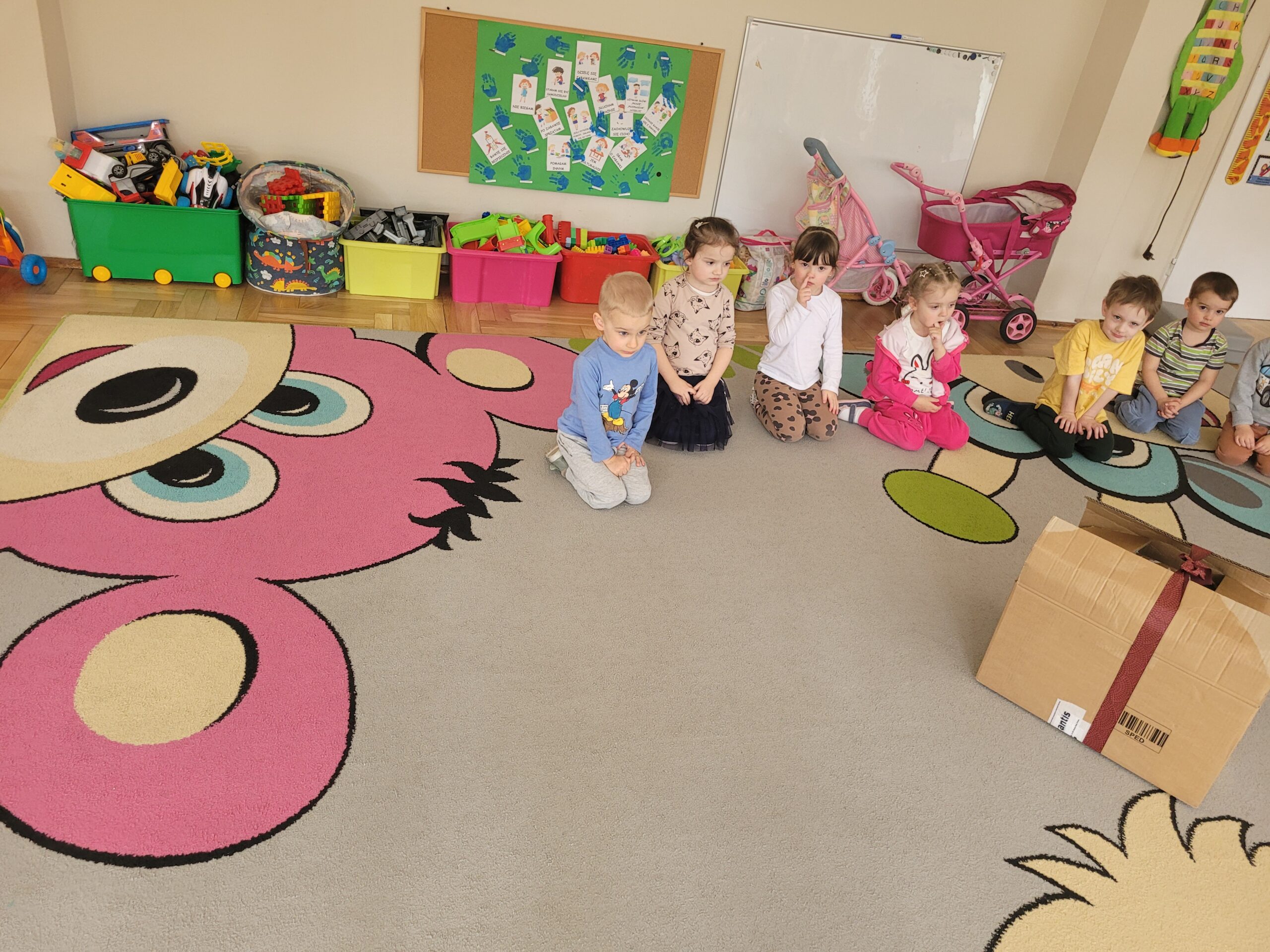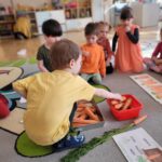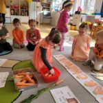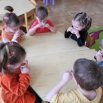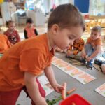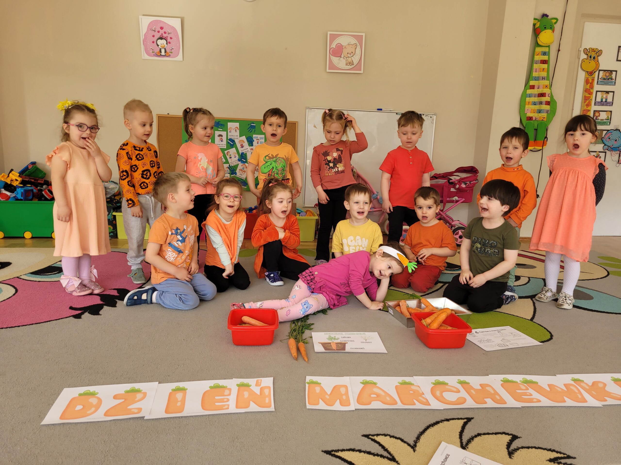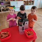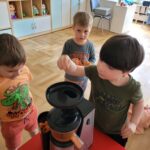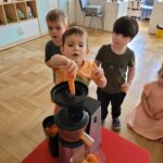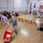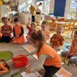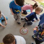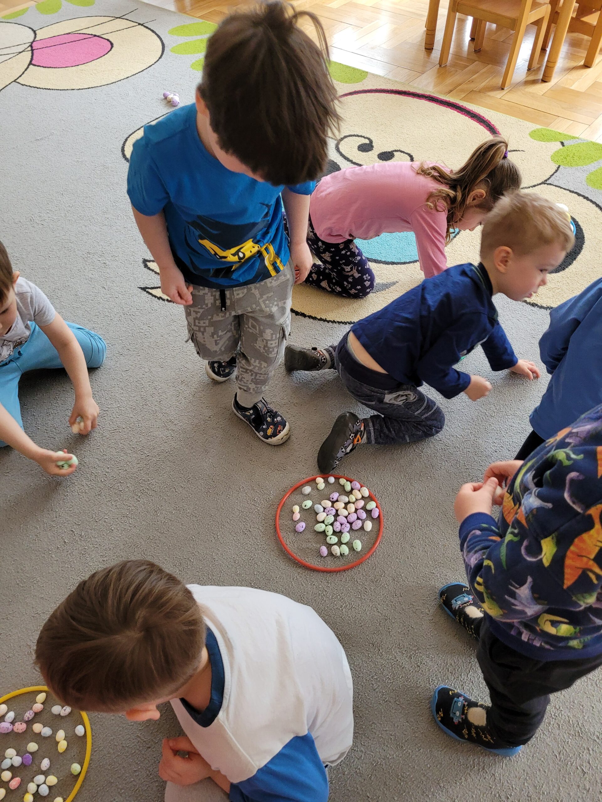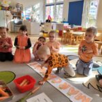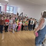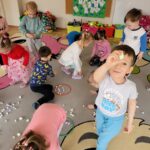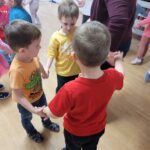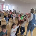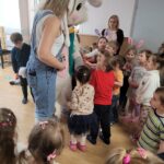W ciągu ostatniego tygodnia rozmawialiśmy głównie na temat wielkanocnych zwyczajów, symboli i potraw. Poznaliśmy różne sposoby ozdabiania jajek i wiemy, czym pisanki różnią się od kraszanek. Braliśmy nawet udział w wyścigu zbierania pisanek! Wiemy, jak upiec wielkanocną babkę i co powinno się znaleźć w koszyczku. Poznaliśmy piosenkę Zajączek i świetnie się przy niej bawiliśmy. Wiemy, czym jest lany poniedziałek i jakie tradycje wiążą się z tym dniem. Podczas zabaw muzycznych i rytmicznych dostosowywaliśmy swój ruch do zmieniającego się tempa, rytmu i melodii. A w piątek bawiliśmy się z Zajączkiem i kolegami z innych grup, były tańce konkursy i dużo zdjęć aby uwiecznić te magiczne chwile.