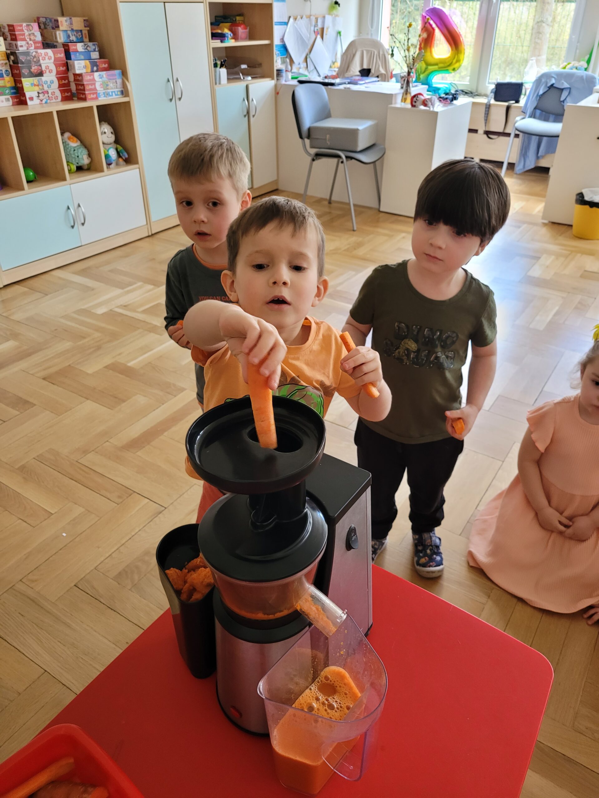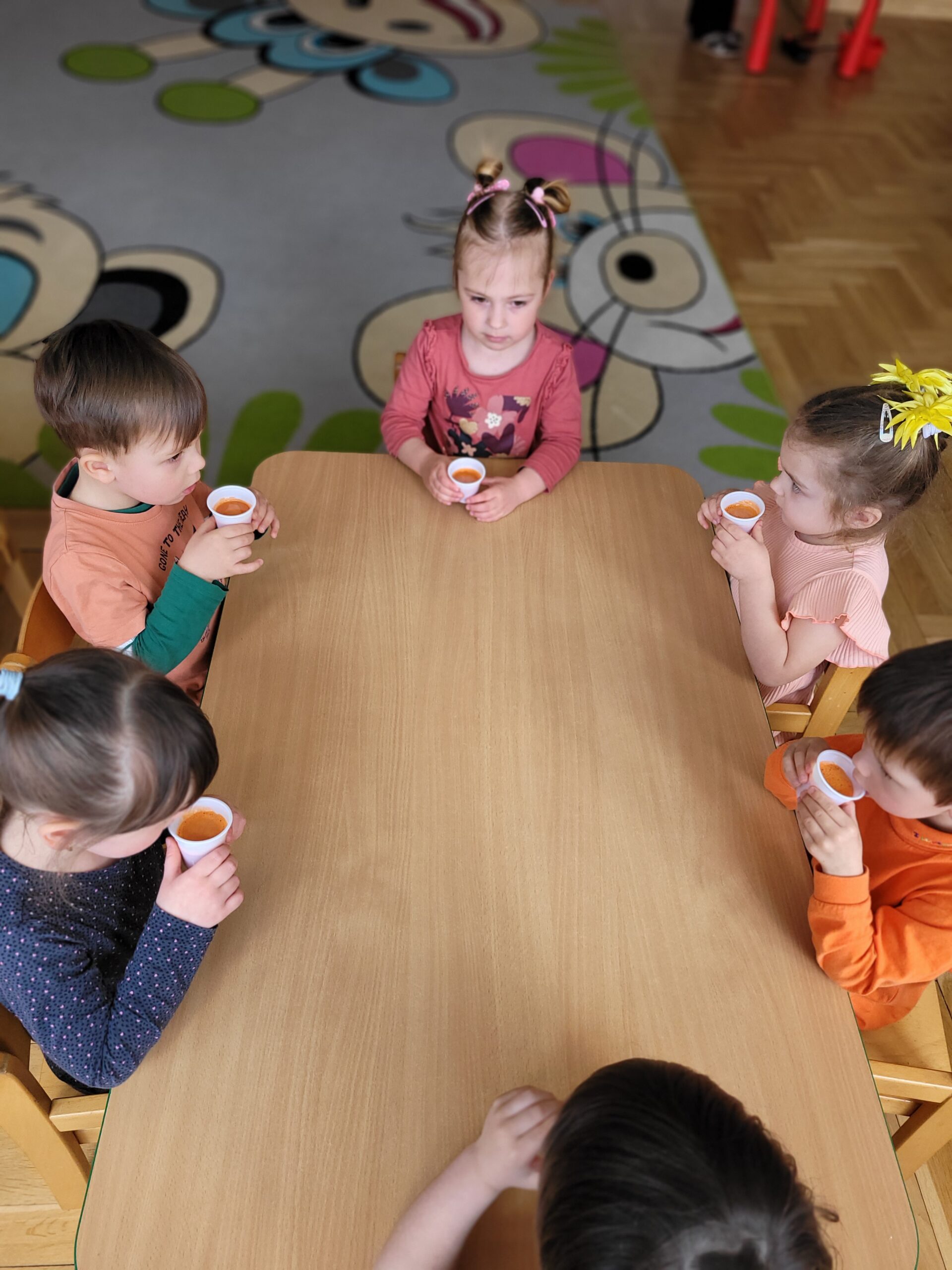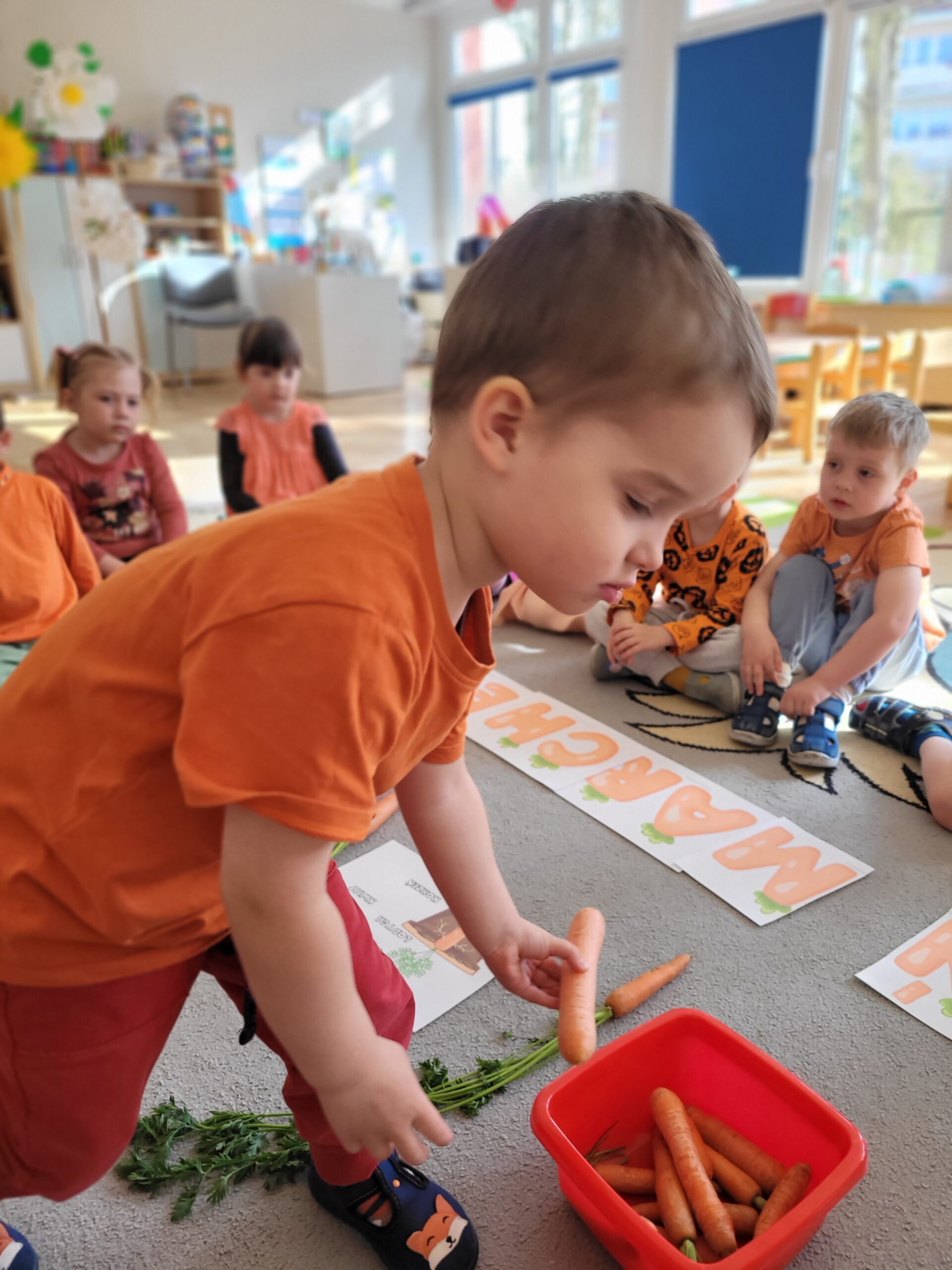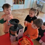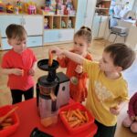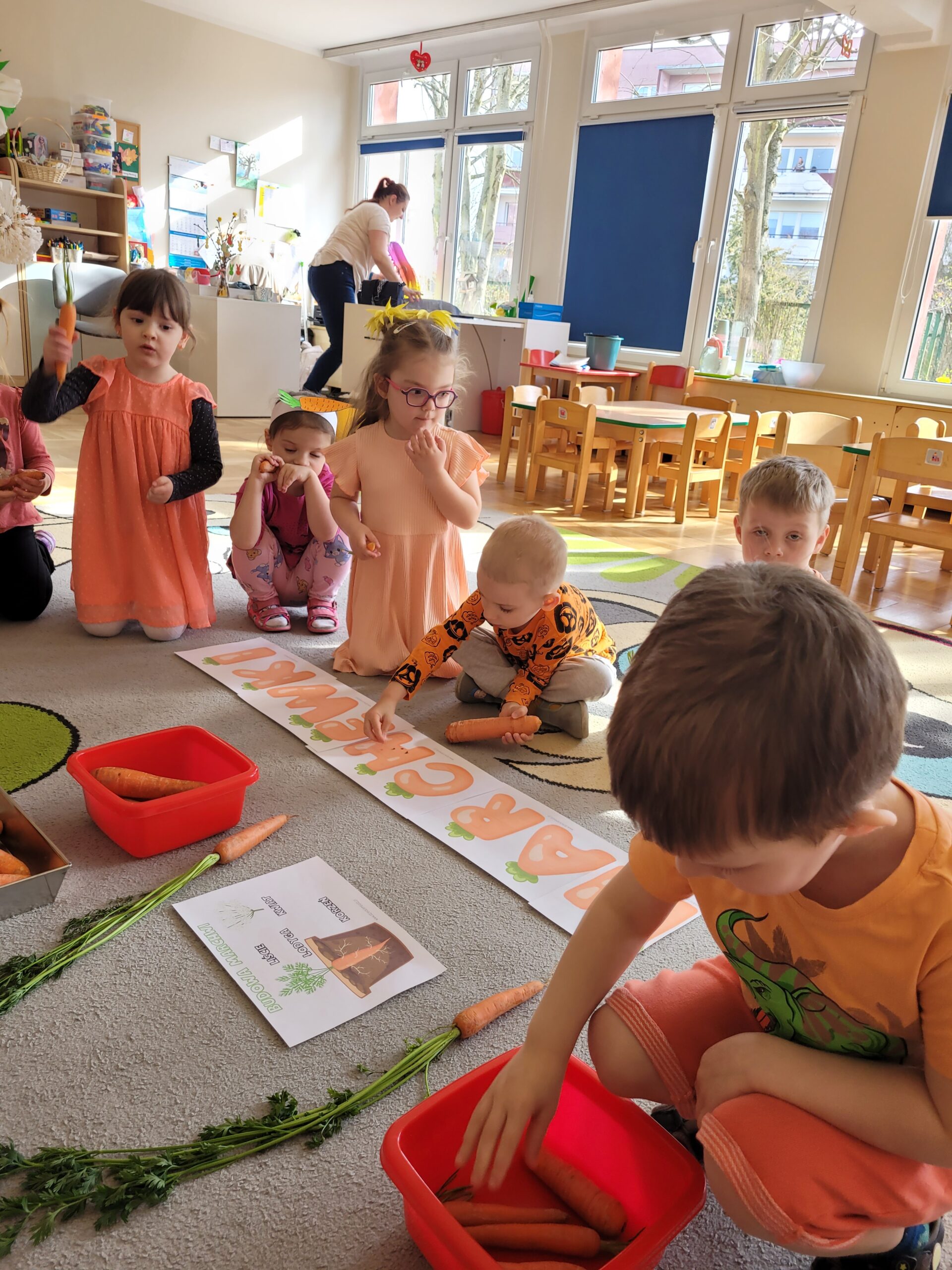 W ciągu ostatniego tygodnia rozmawialiśmy głównie na temat wielkanocnych zwyczajów, symboli i potraw. Poznaliśmy różne sposoby ozdabiania jajek i wiemy, czym pisanki różnią się od kraszanek. Braliśmy nawet udział w wyścigu zbierania pisanek! Wiemy, jak upiec wielkanocną babkę i co powinno się znaleźć w koszyczku. Poznaliśmy piosenkę Zajączek i świetnie się przy niej bawiliśmy. Wiemy, czym jest lany poniedziałek i jakie tradycje wiążą się z tym dniem. Podczas zabaw muzycznych i rytmicznych dostosowywaliśmy swój ruch do zmieniającego się tempa, rytmu i melodii. A w piątek bawiliśmy się z Zajączkiem i kolegami z innych grup, były tańce konkursy i dużo zdjęć aby uwiecznić te magiczne chwile.