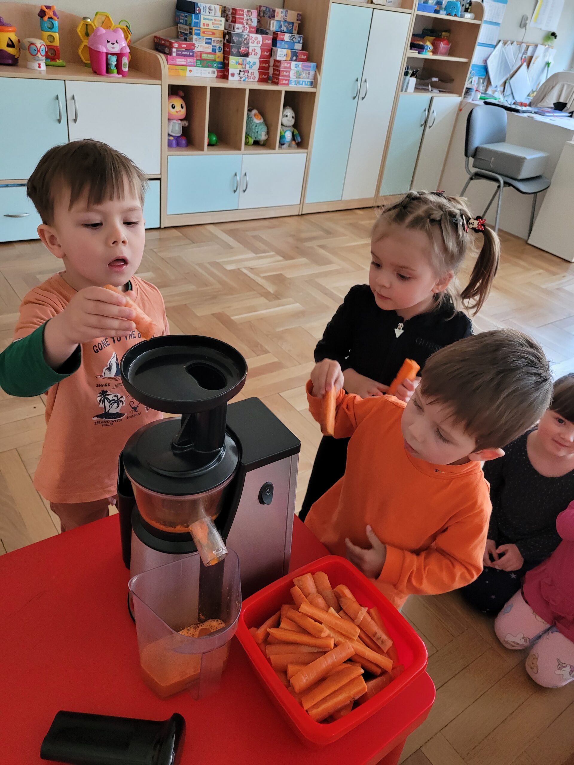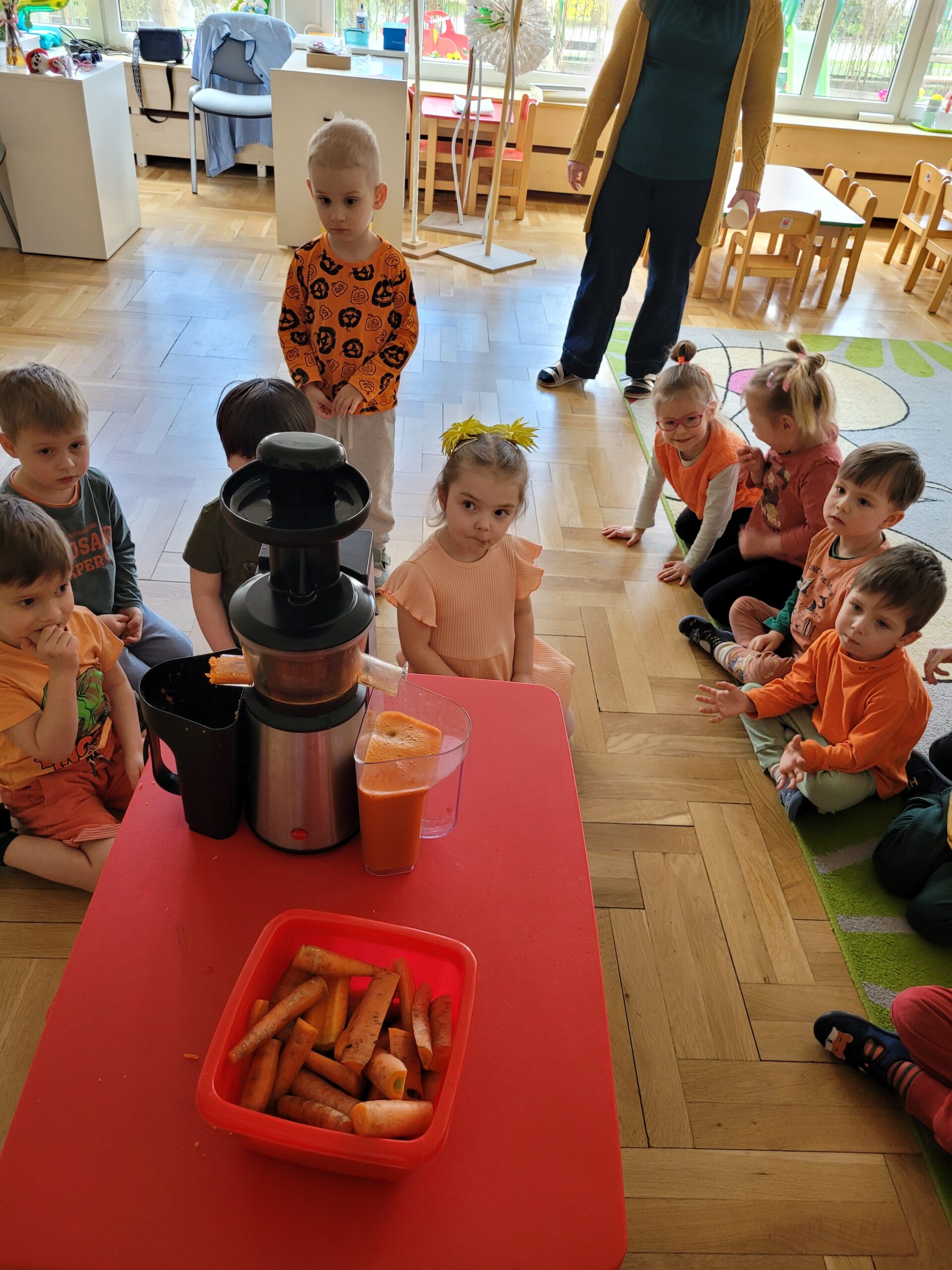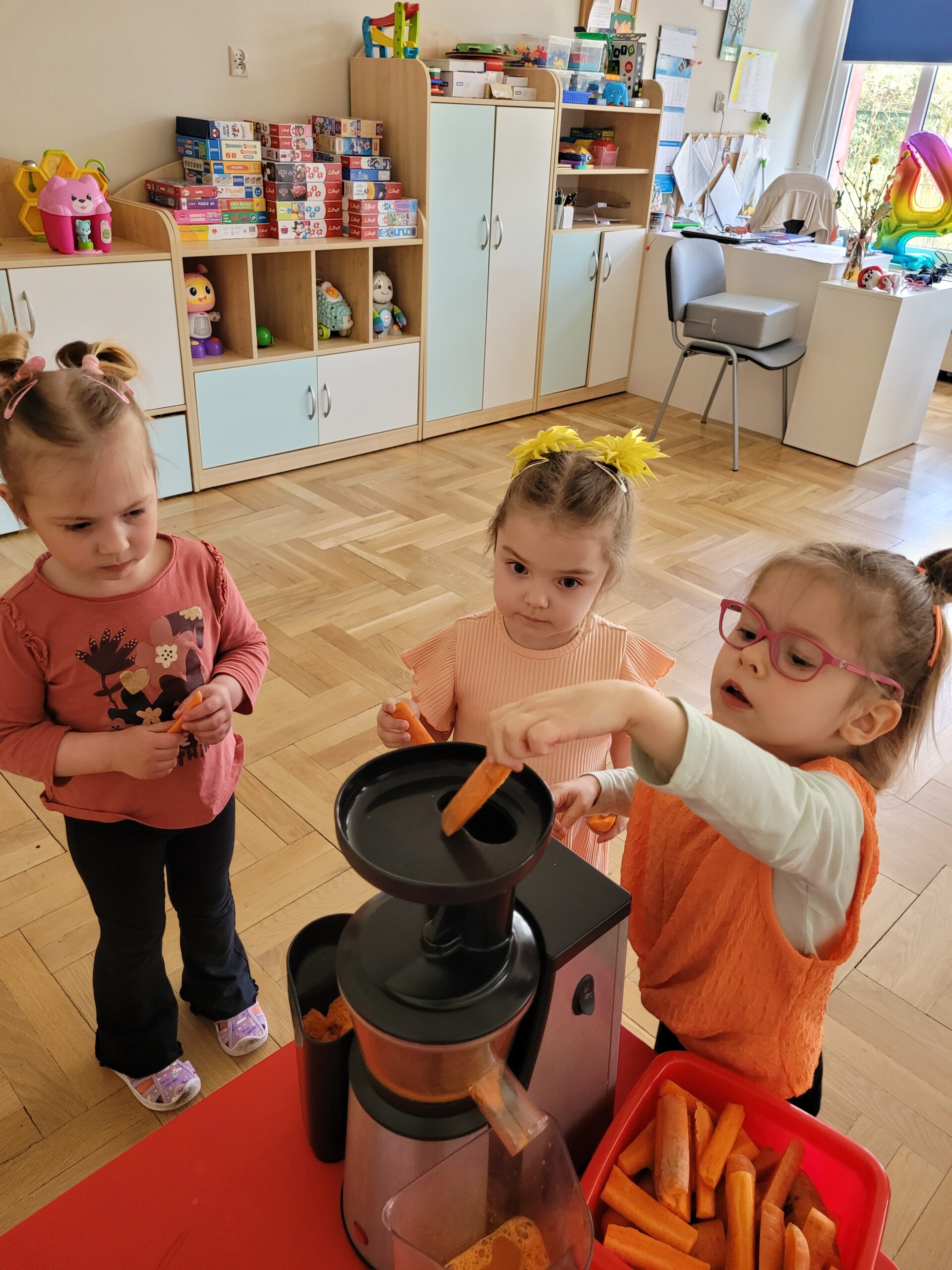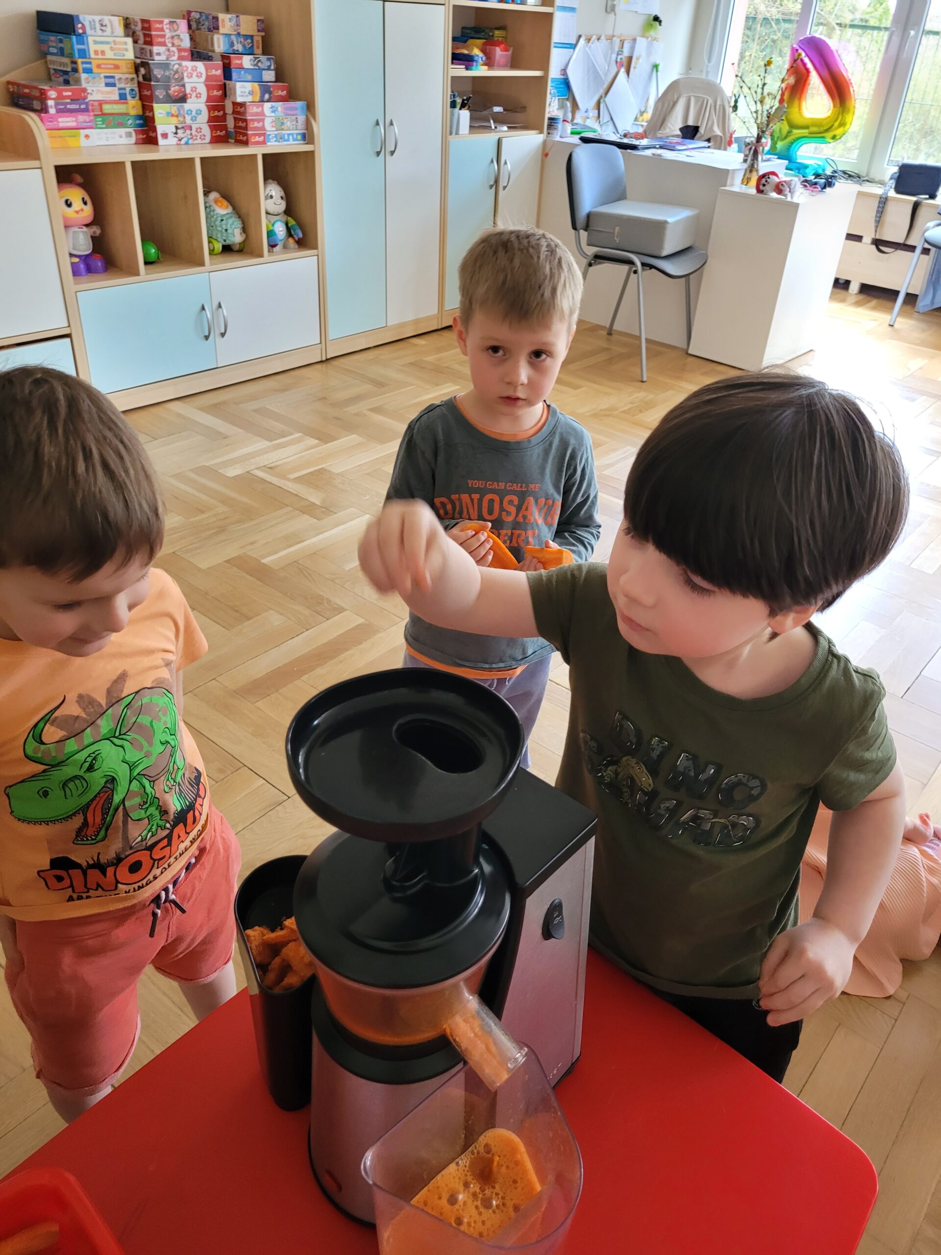 W ciągu ostatniego tygodnia rozmawialiśmy głównie na temat wielkanocnych zwyczajów, symboli i potraw. Poznaliśmy różne sposoby ozdabiania jajek i wiemy, czym pisanki różnią się od kraszanek. Braliśmy nawet udział w wyścigu zbierania pisanek! Wiemy, jak upiec wielkanocną babkę i co powinno się znaleźć w koszyczku. Poznaliśmy piosenkę Zajączek i świetnie się przy niej bawiliśmy. Wiemy, czym jest lany poniedziałek i jakie tradycje wiążą się z tym dniem. Podczas zabaw muzycznych i rytmicznych dostosowywaliśmy swój ruch do zmieniającego się tempa, rytmu i melodii. A w piątek bawiliśmy się z Zajączkiem i kolegami z innych grup, były tańce konkursy i dużo zdjęć aby uwiecznić te magiczne chwile.